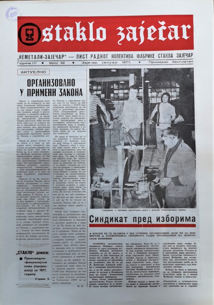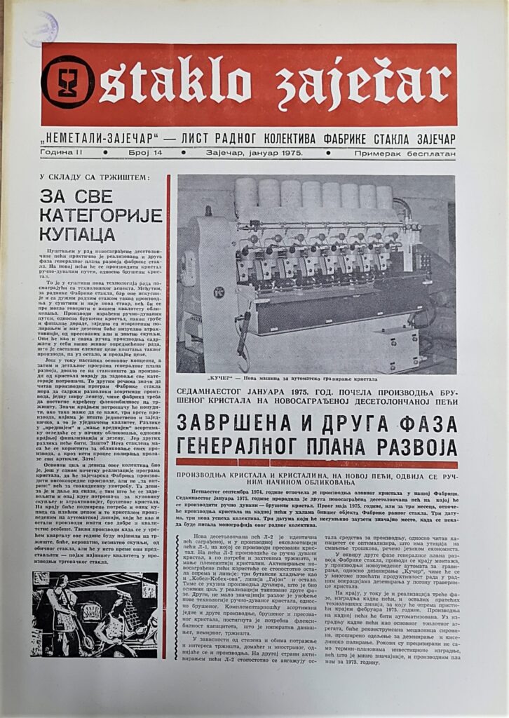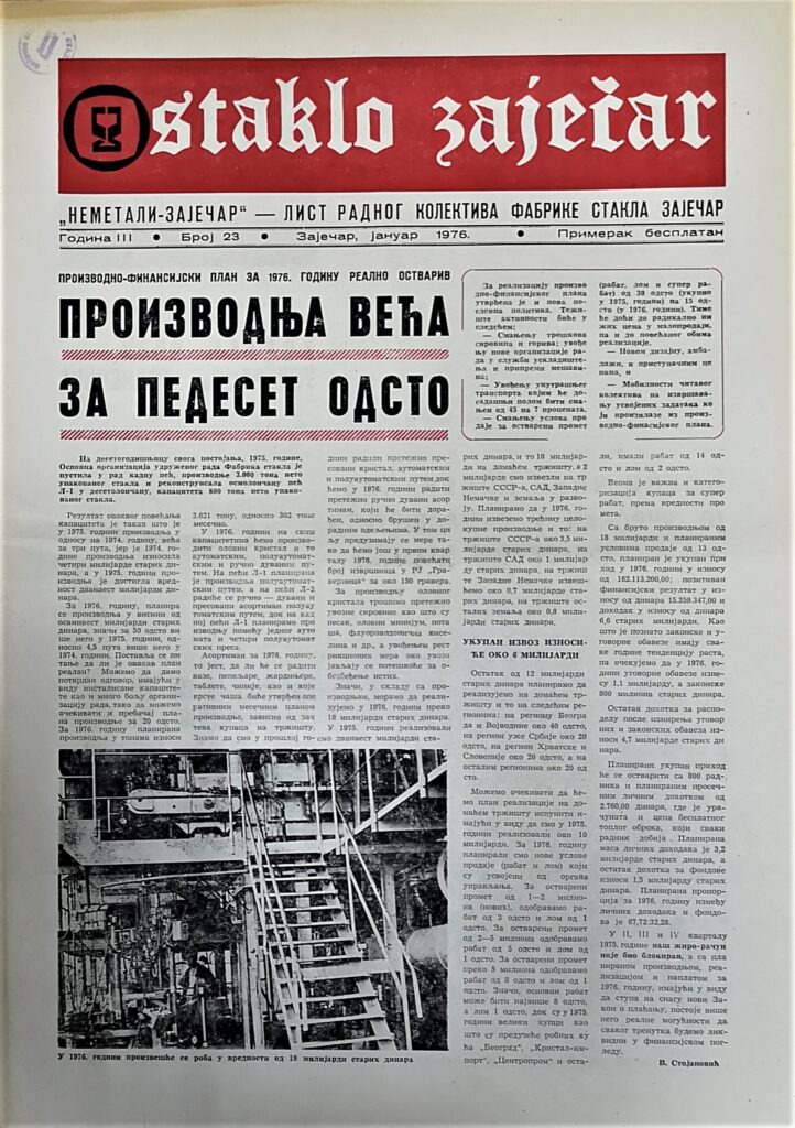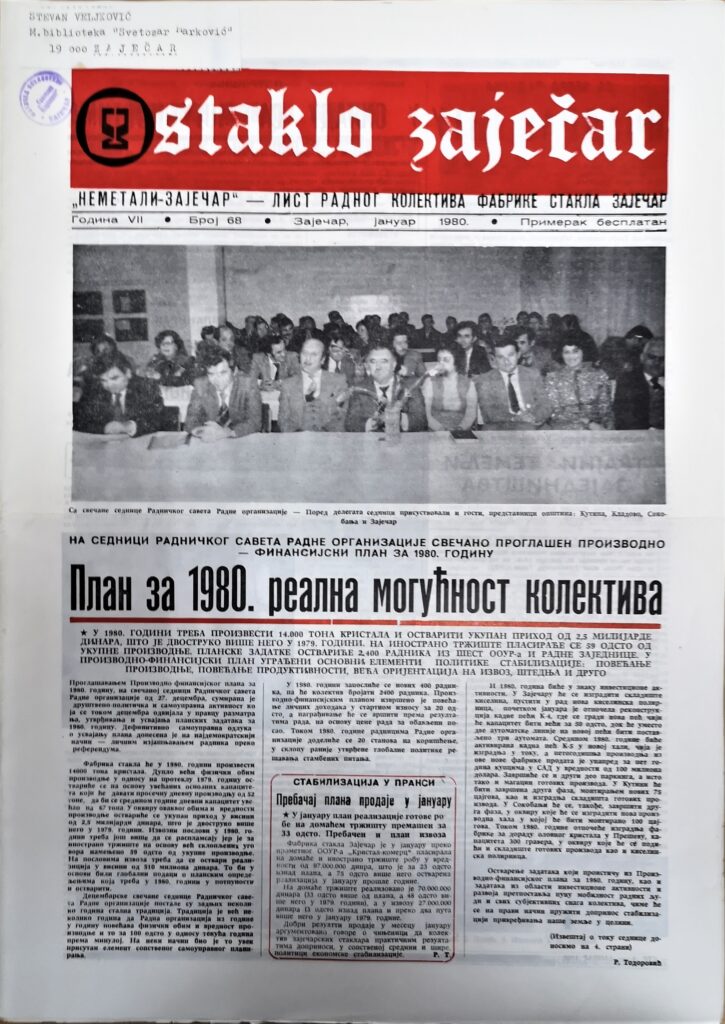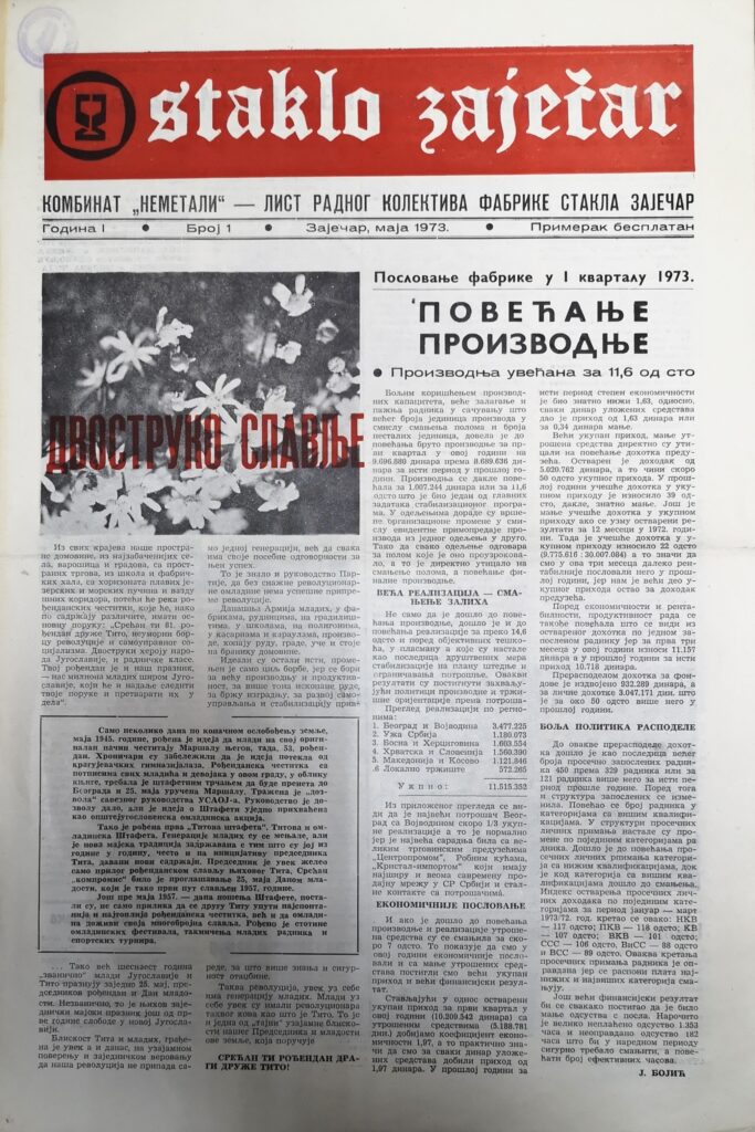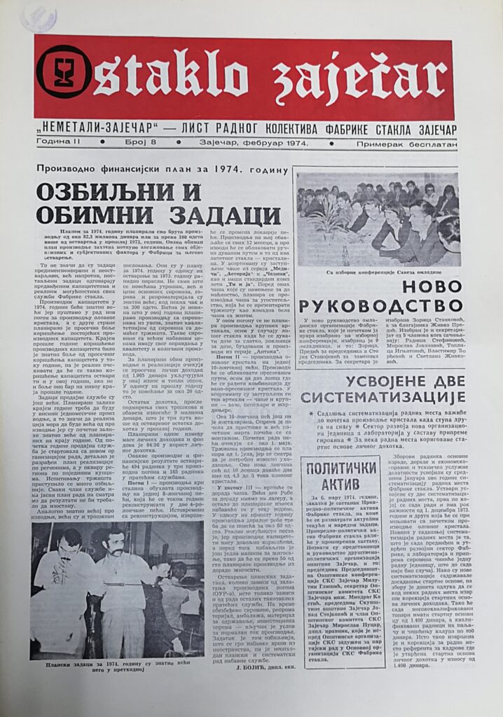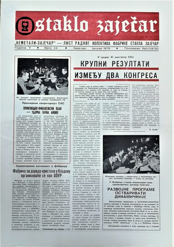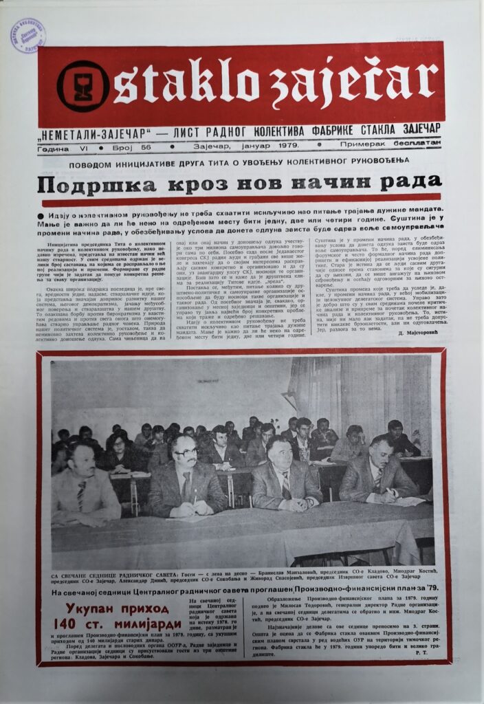Odluku o pokretanju glasila kolektiva Radnički savet fabrike stakla u Zaječaru doneo je
