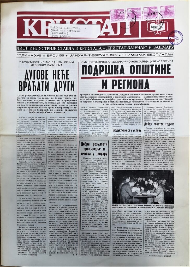 Ovde vam donosimo digitalizovanu verziju svih izdanja fabričkog lista do kojih smo došli zahvaljujući Matičnoj biblioteci “Svetozar Marković” u Zaječaru, u kojoj se brižno čuvaju i gde možete konsultovati originale. Više o istorijatu ovih novina možete pronaći u tekstu “List Kristal i studio Kristal”.